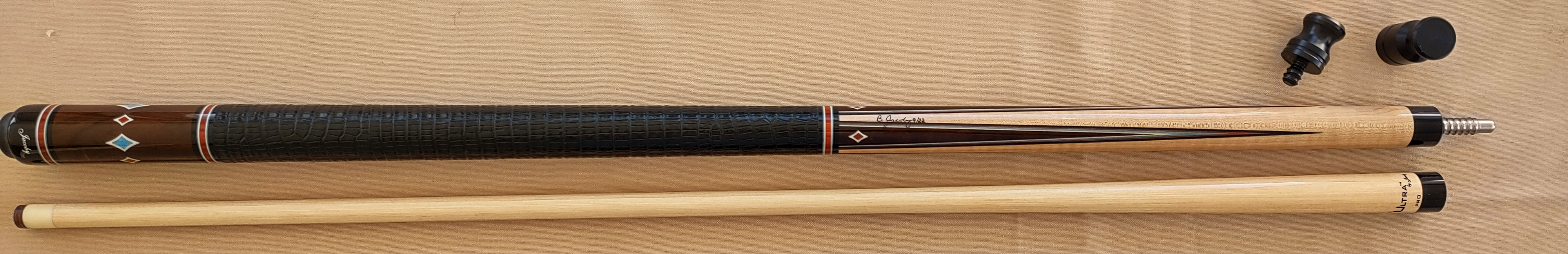 Beautiful cue with true spliced points and 4 veneers.