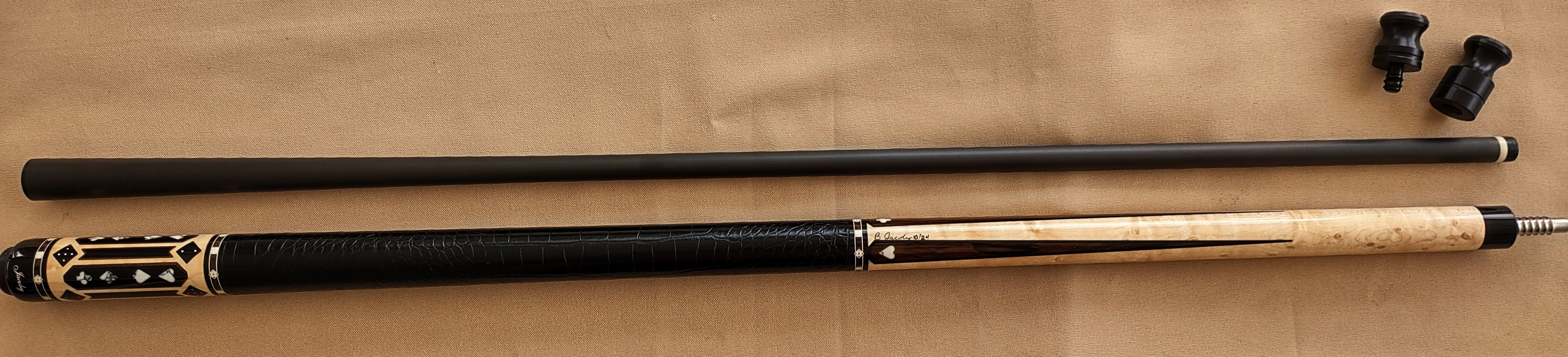 Creative "Gambler" cue. Includes the 4 suits of a card decl and a pair of dice with the number "7" inlaid.